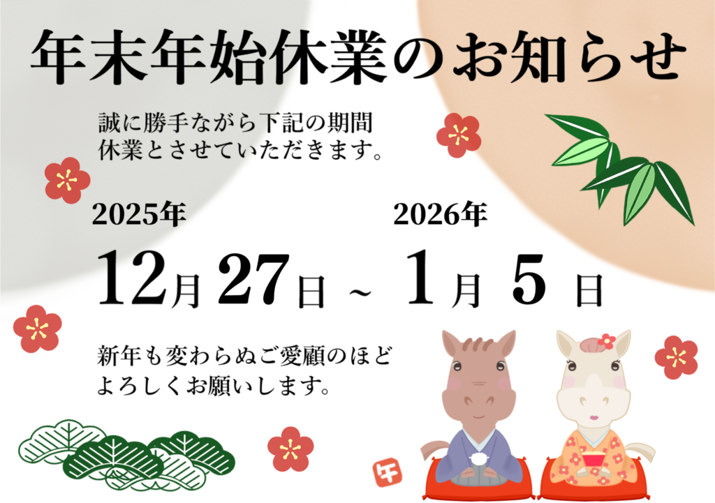 年末年始休業のお知らせ